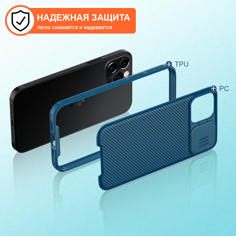 Чехол для телефона iPhone 12/12 Pro Nillkin CamShield Pro Case синий TPU с защитой камеры