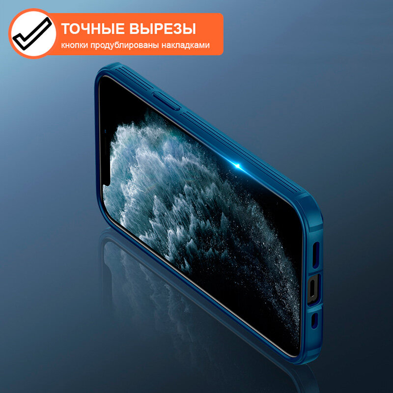 Накладка Nillkin CamShield Pro Case с защитой камеры для iPhone 12 / 12 Pro синий