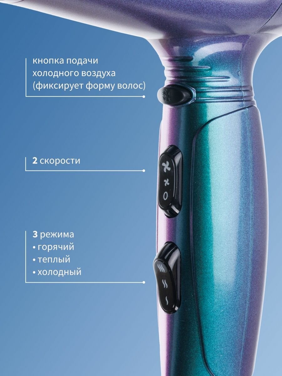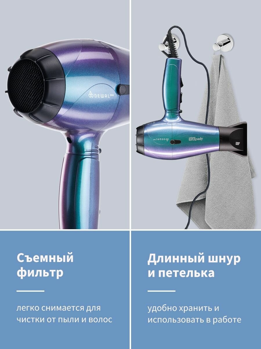 Фен DEWAL Spectrum Compact бирюзовый хамелеон, 2100 Вт, ионизация, 2 насадки