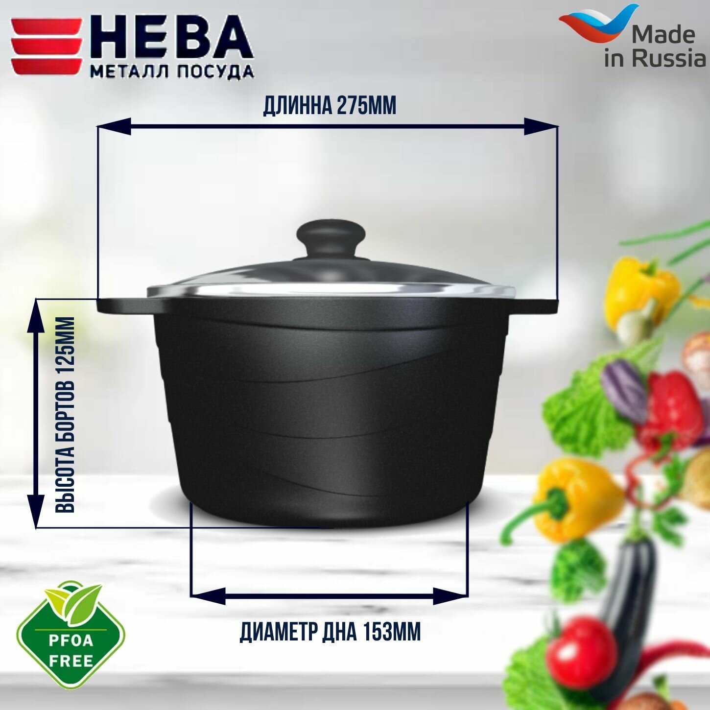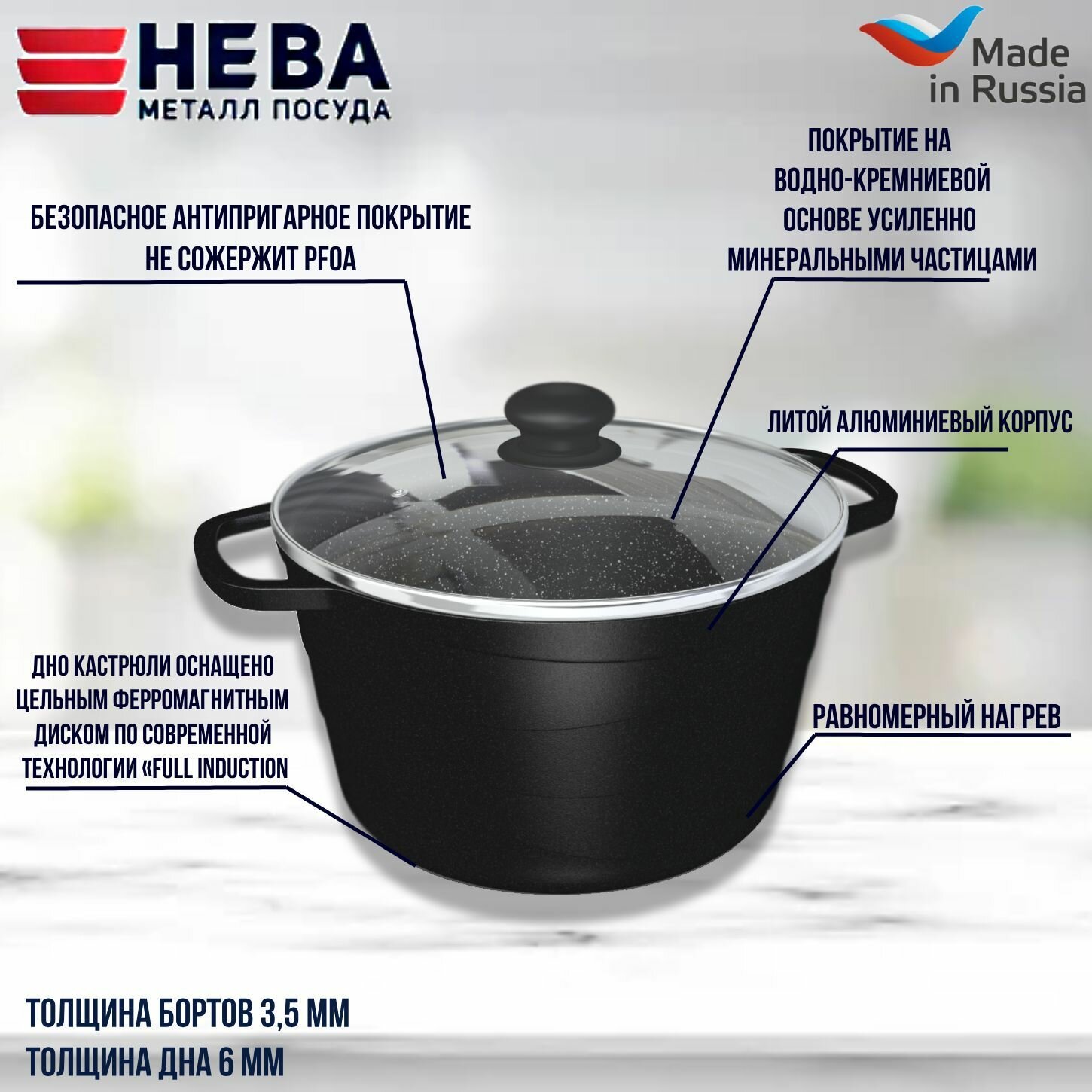 Кастрюля Нева Металл Посуда со стеклянной крышкой "Литая" Индукция Гранит, 4л, антипригарное покрытие