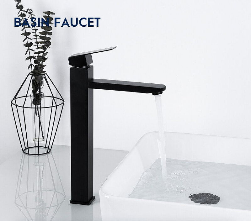 Смеситель для раковины F10802-62 FRAP высокий, нержавеющая сталь/черный