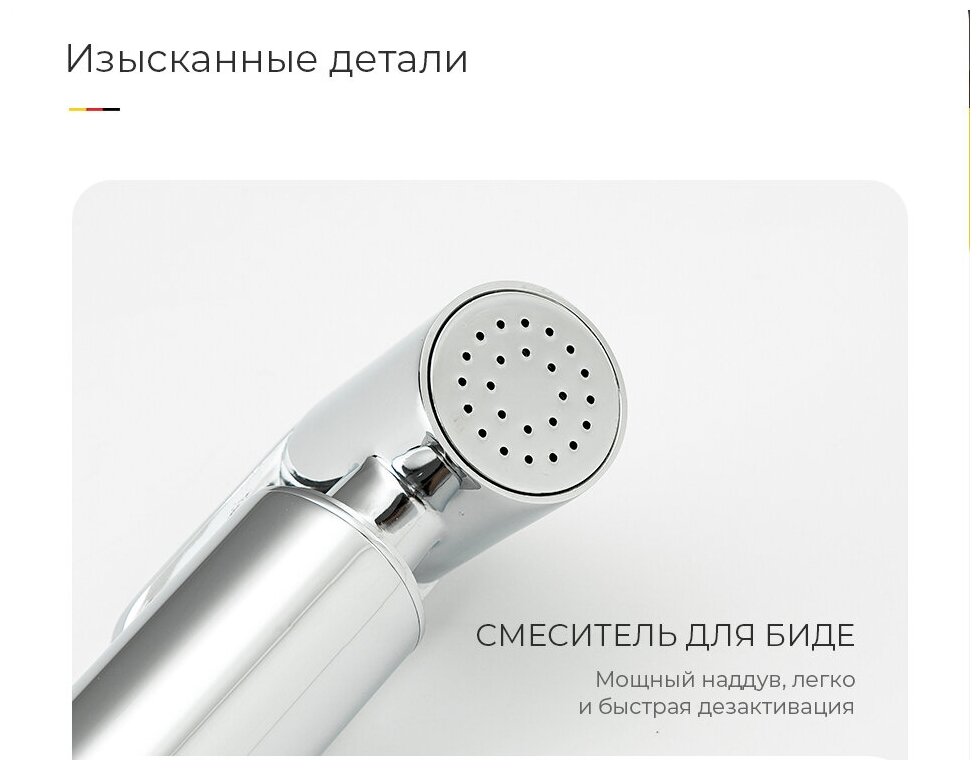 | Комплектация | с гигиеническим душем / держатель лейки / душевой шланг 120 см / комплект эксцентриков / комплект отражателей |