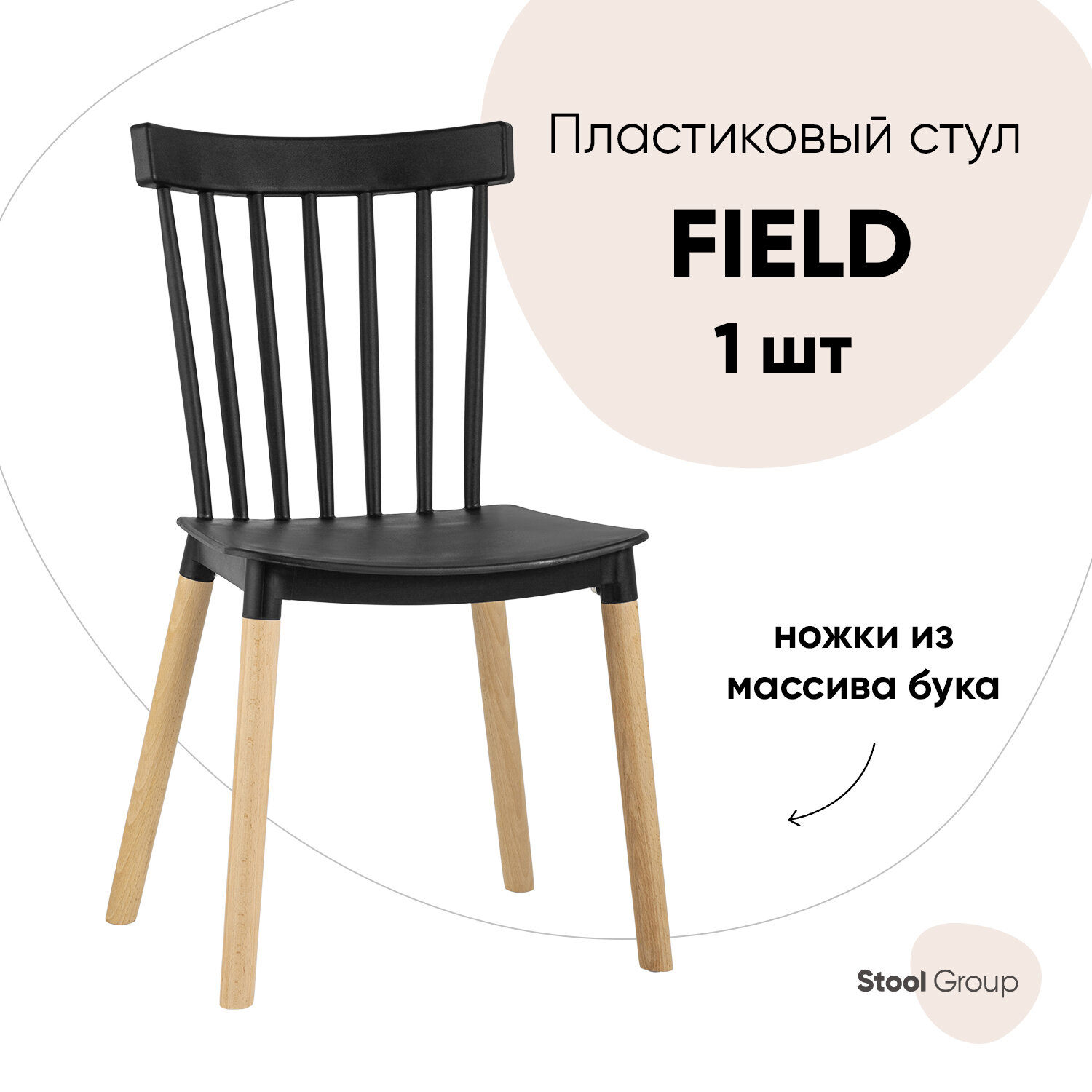 Стул Field STOOL GROUP черный, пластик, дерево, твердое сиденье, без подлокотников