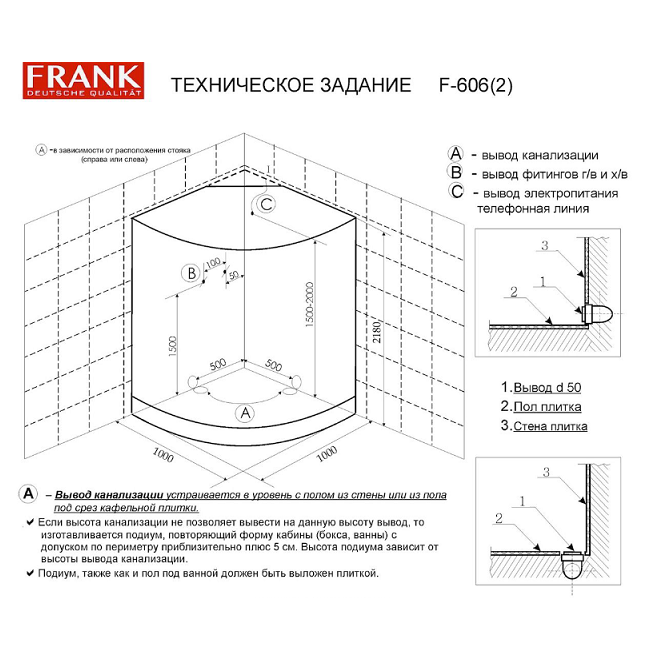 Душевая кабина Frank F-606 1000*1000 с турецкой баней, угловая интересное: