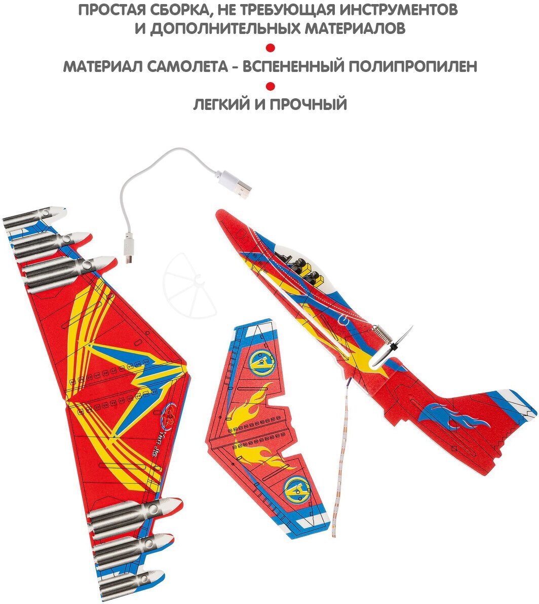 Самолет Истребитель с моторчиком красный, сборный, аккумулятор 31х12х2,5см