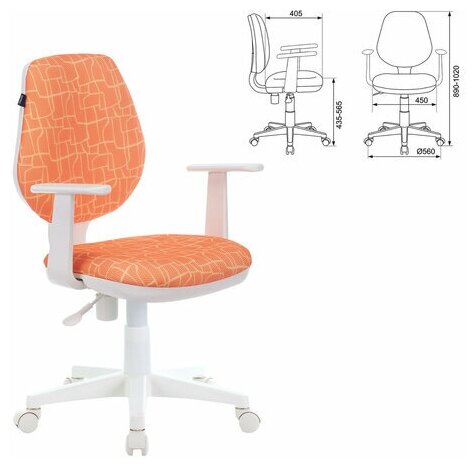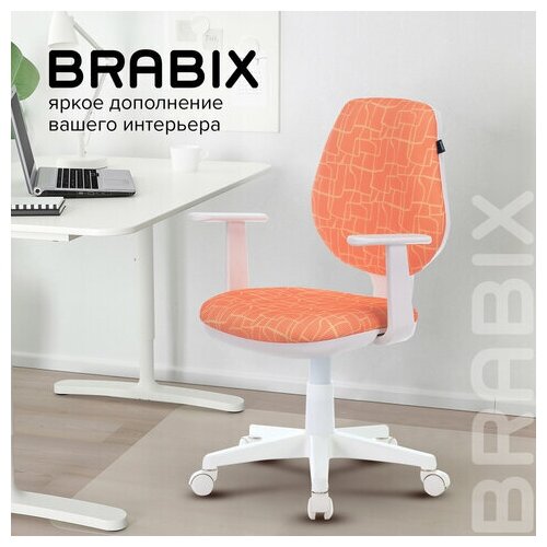 Кресло детское BRABIX Fancy MG-201W, с подлокотниками, пластик белый, оранжевое TW-96-1, 532410