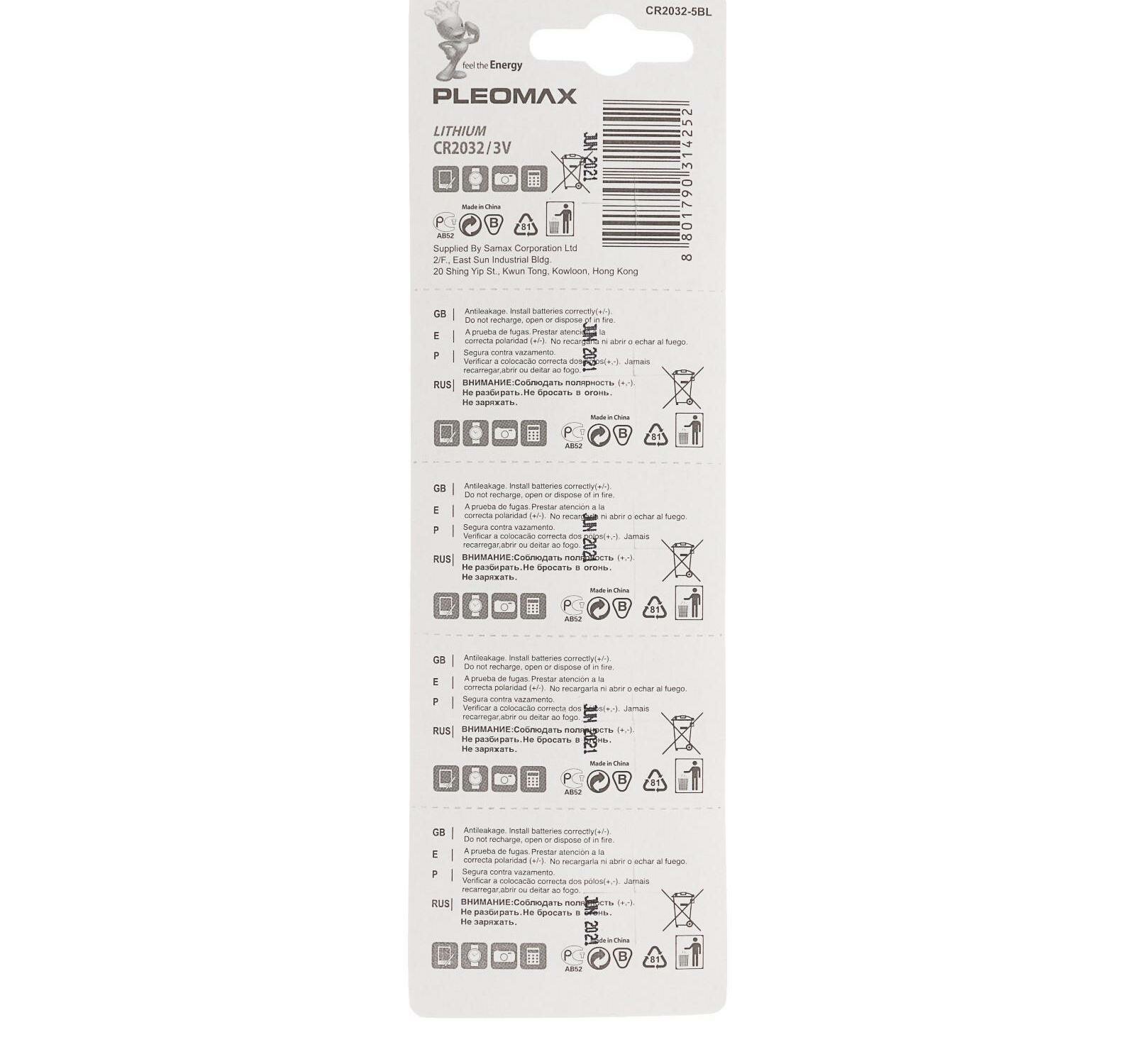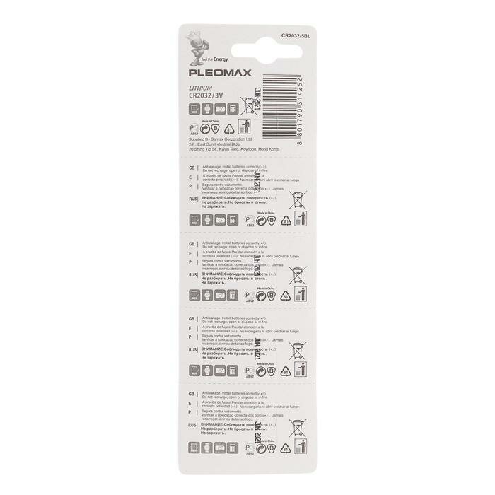 Батарейка литиевая Pleomax, CR2032-5BL, 3В, блистер, 5 шт. 824041 интересное:
