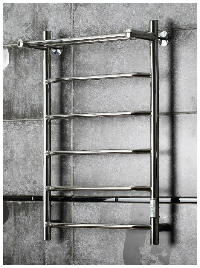 Стандарт с полкой полотенцесушитель электрический 500х800 мм /7п/, хром, с терморегулятором, TermoSmart / ТермоСмарт, производство Россия
