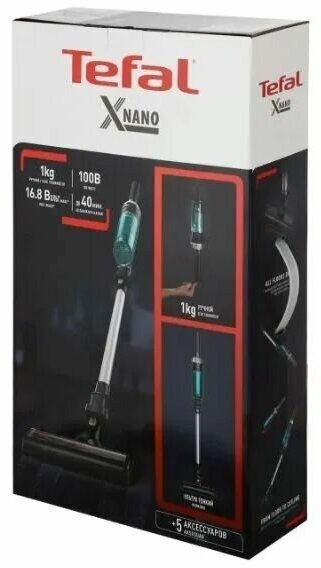 Беспроводной пылесос Tefal X-Nano Essential TY1127WO, до 40 минут, с турбощеткой, черный/зеленый