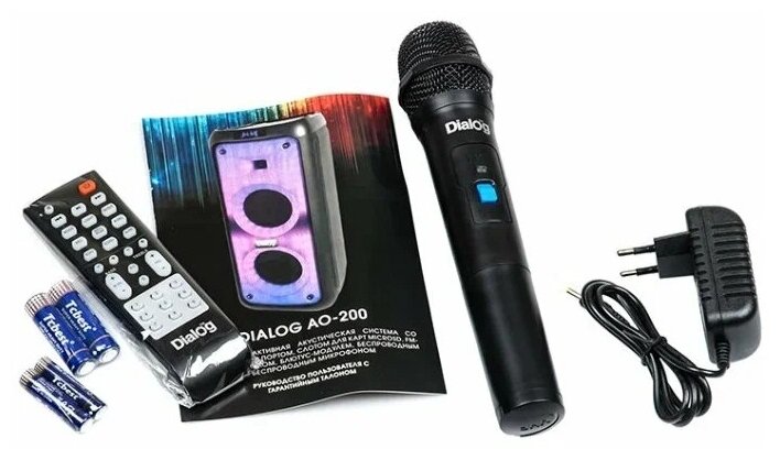 | Дополнительная информация | комплект поставки: акустическая система - 1 шт, адаптер питания ~220В -> 9В 2А - 1 шт, беспроводной микрофон - 1 шт, ИК пульт ДУ - 1 шт, батарейки ААА для пульта ДУ - 2 шт, батарейки АА для беспроводного микрофона - 2 шт, руководство пользователя с гарантийным талоном - 1 шт, упаковка - 1 шт |
