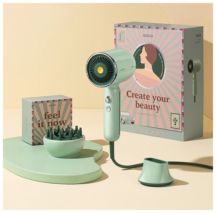 Фен Soocas Фен Soocas RH1 Retro Massage, зеленый интересное: