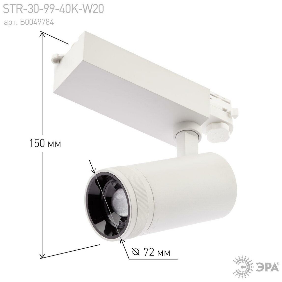 Светильник трековый трехфазный ЭРА STR-30-99-40K-W20 регулируемый луч 4000K белый арт. Б0049784 (1 шт.)