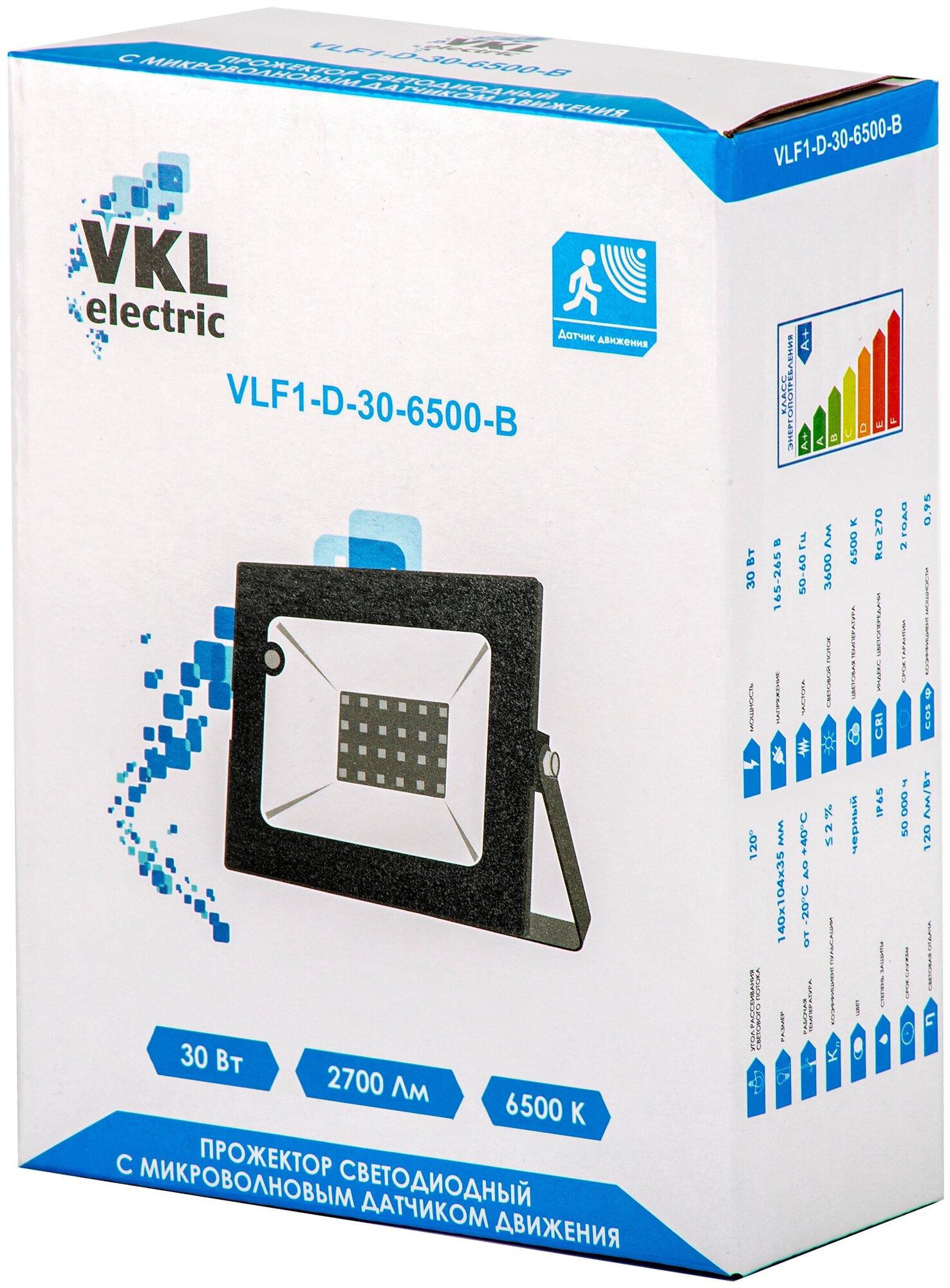 Прожектор с датчиком движ.30W VLF1-D-30-6500-B 6500К IP65 VKL