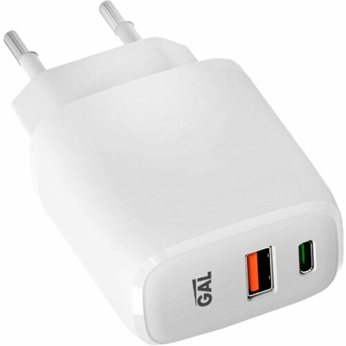 Купить Сетевой адаптер питания GAL UC-5129 , зарядка USB-C PD 20W и USB QuickCharge 3.0, 2 порта, белый