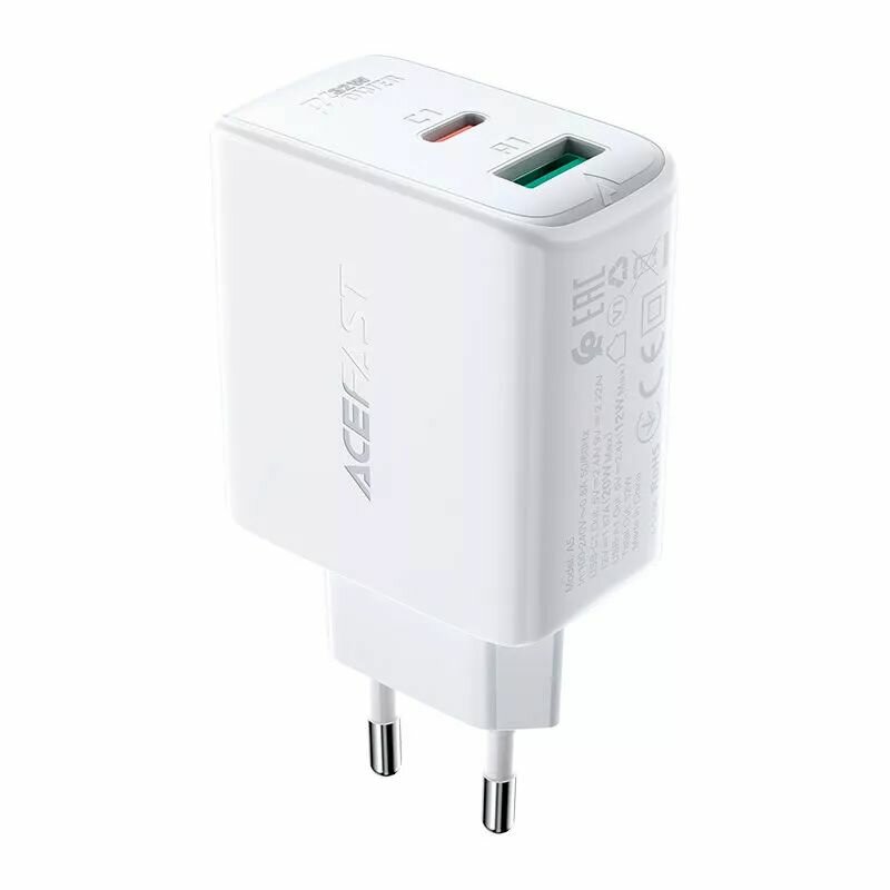 Сетевое зарядное устройство ACEFAST A29 GaN PD50W (2xUSB-C) Fast Charge Wall Charger белое (EU)