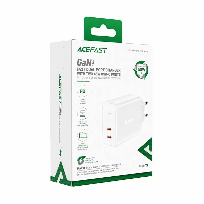 Сетевое зарядное устройство ACEFAST A29 PD50W GAN, USB-C+USB-C, Белый