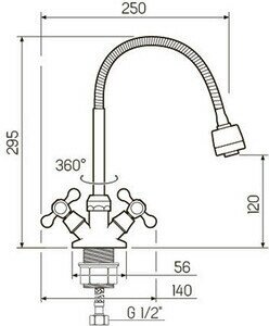 Смеситель для кухни, РМС, гибк излив, с кран-буксой, хром, SL65-279F