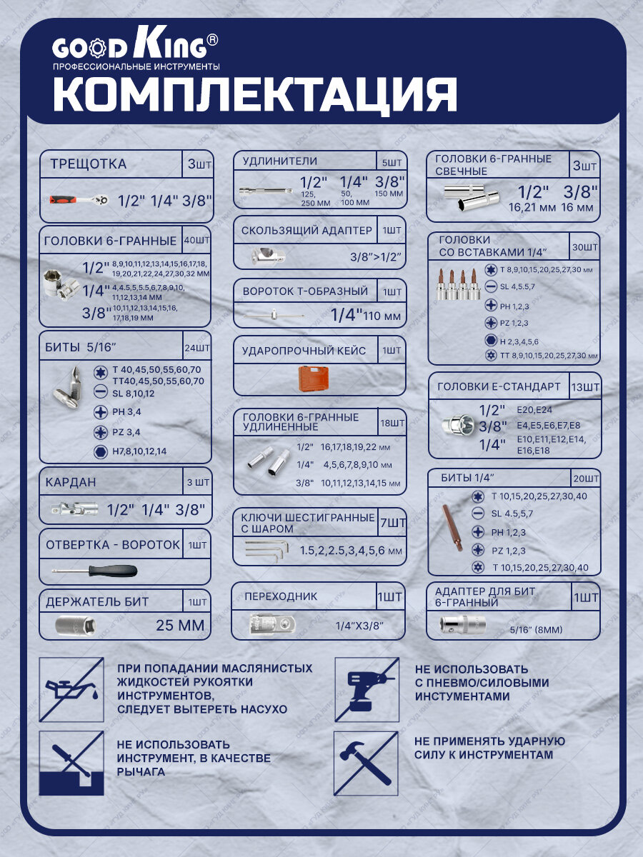 Набор инструментов GOODKING 172 предмета 1/2", 3/8", 1/4" K-10172