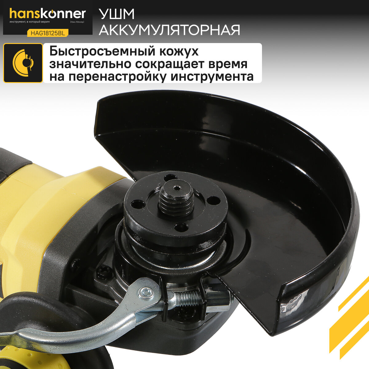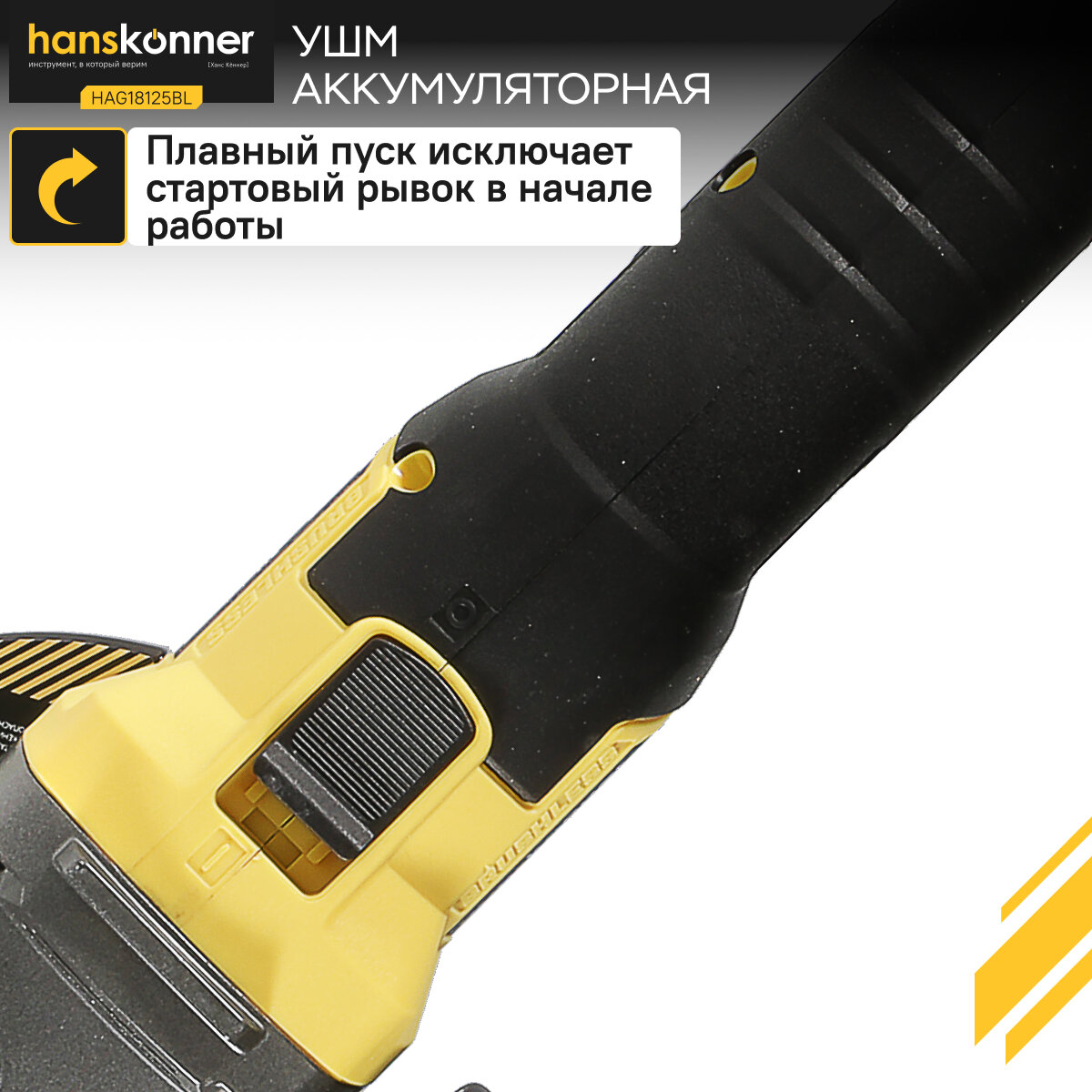 Углошлифмашина акк. Hanskonner HAG18125BL ,18 В ,125 мм , пл. пуск , Арт. HAG18125BL