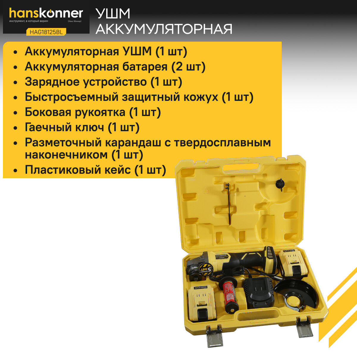 Аккумуляторная УШМ Hanskonner HAG1812E 1BatterySystem
