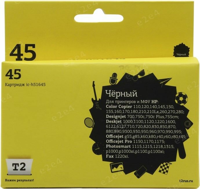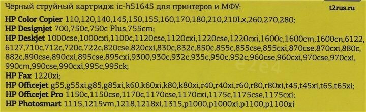 Картридж T2 ic-h51645 (45) Black для DJ 1000cse/1220C/6122/6127/9300, OJ g55/g85/k60/k80/r40/r60 .