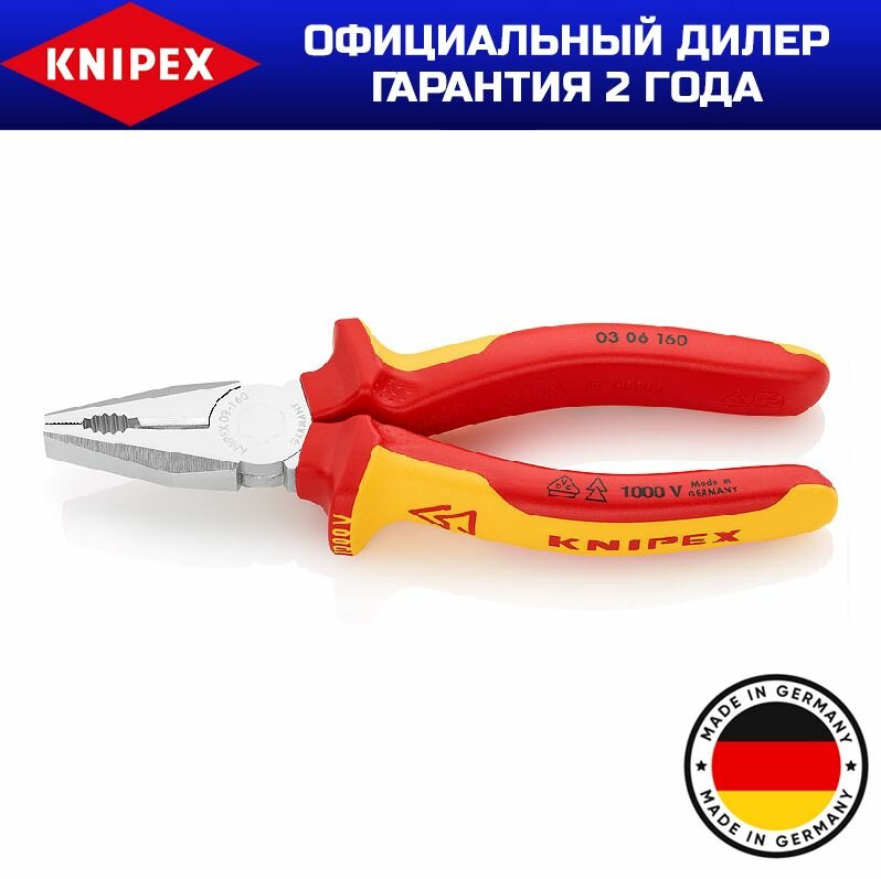 Плоскогубцы комбинированные VDE, 160 мм, хром, 2-комп диэлектрические ручки, SB KNIPEX KN-0306160SB