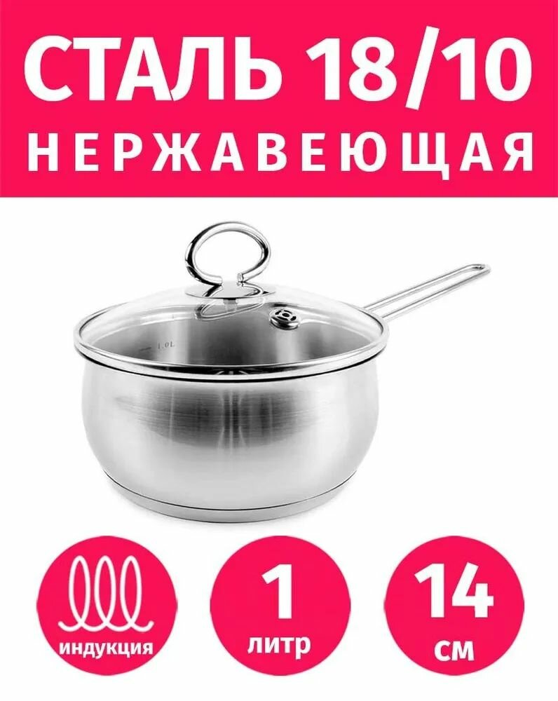 Ковш с кр Tima 1,0л капсулир.дно 0,6 мм, мат