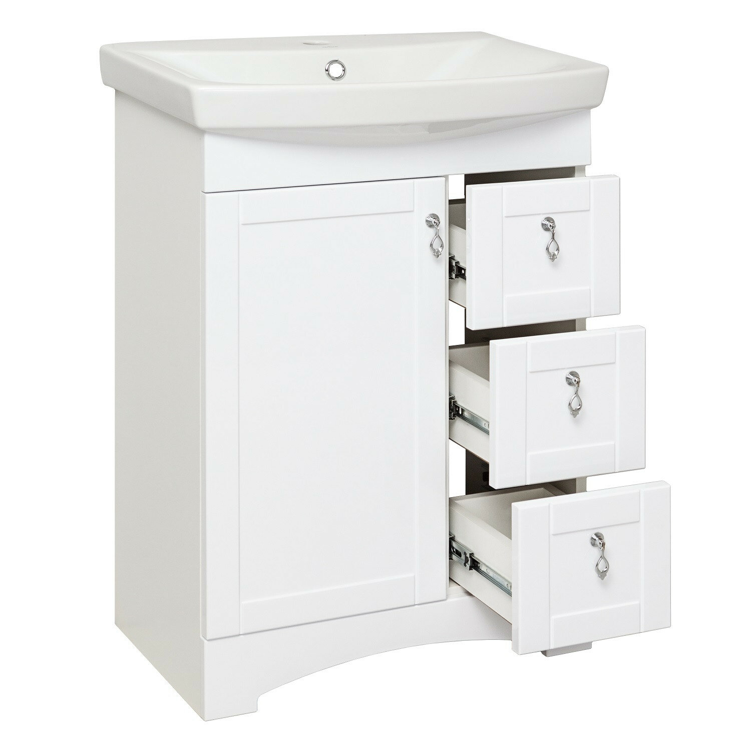 Тумба с раковиной напольная Мерида 60, белая (раковина Carina)
