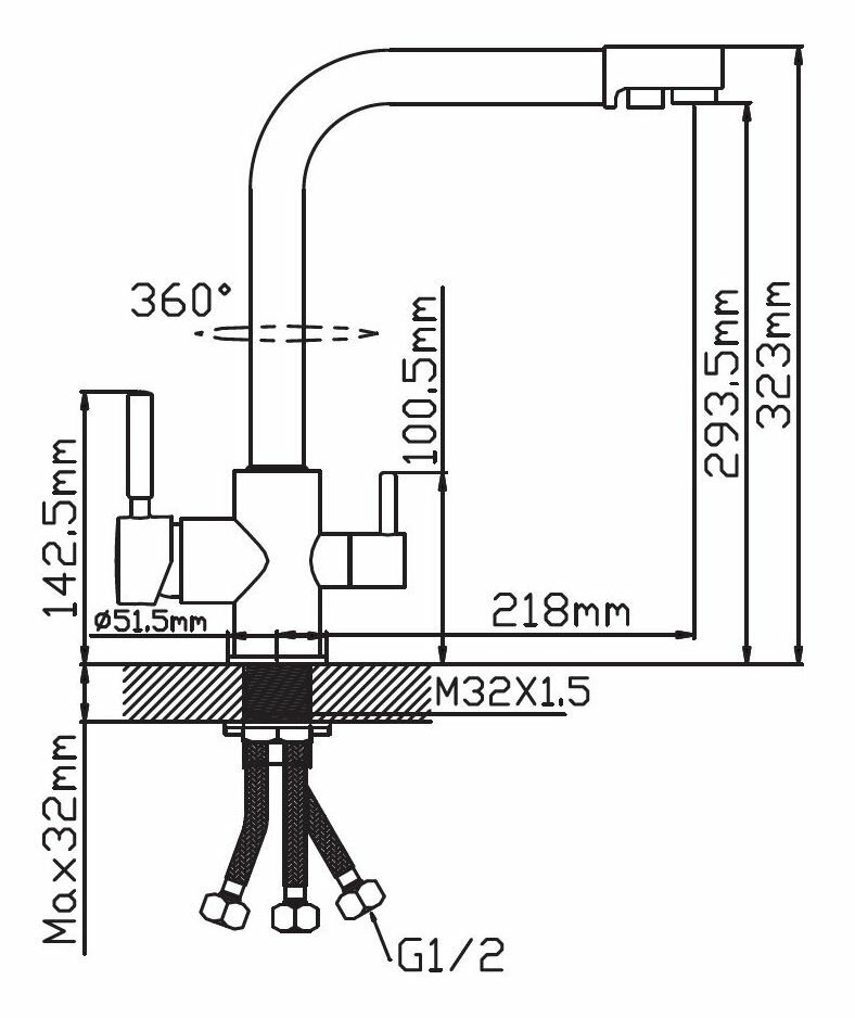 Смеситель для кухонной мойки под фильтр питьевой воды Potato Хром (P4098)