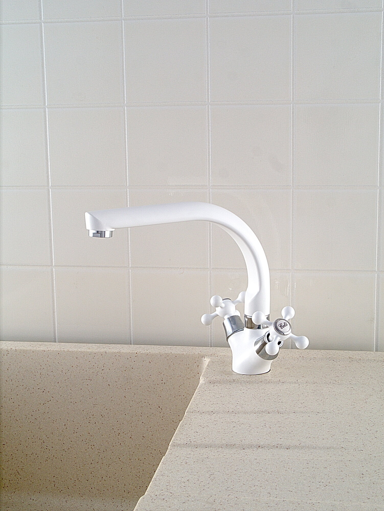 СохранитьСмеситель на кухню Эверест B69-657 с высоким изливом, керамические кран-буксы, белый, крепление гайка интересное:
