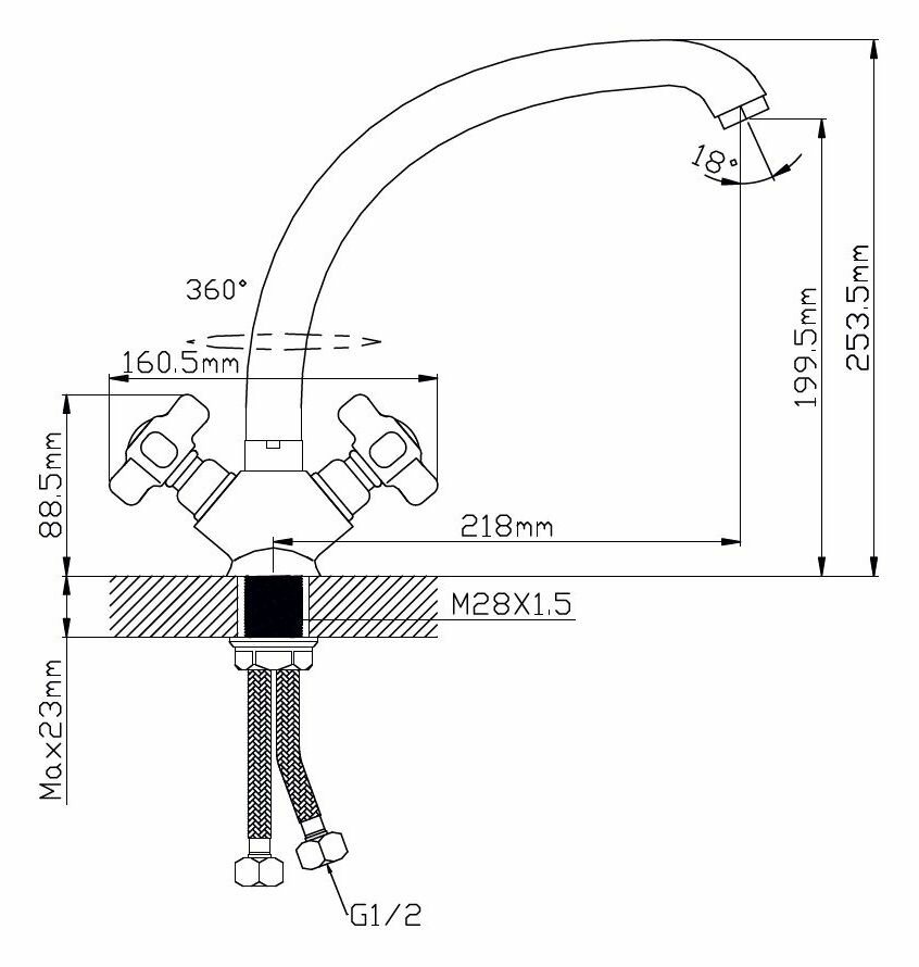 Смеситель для кухни (мойки) FAUZT FZs-811-B126, рычажный