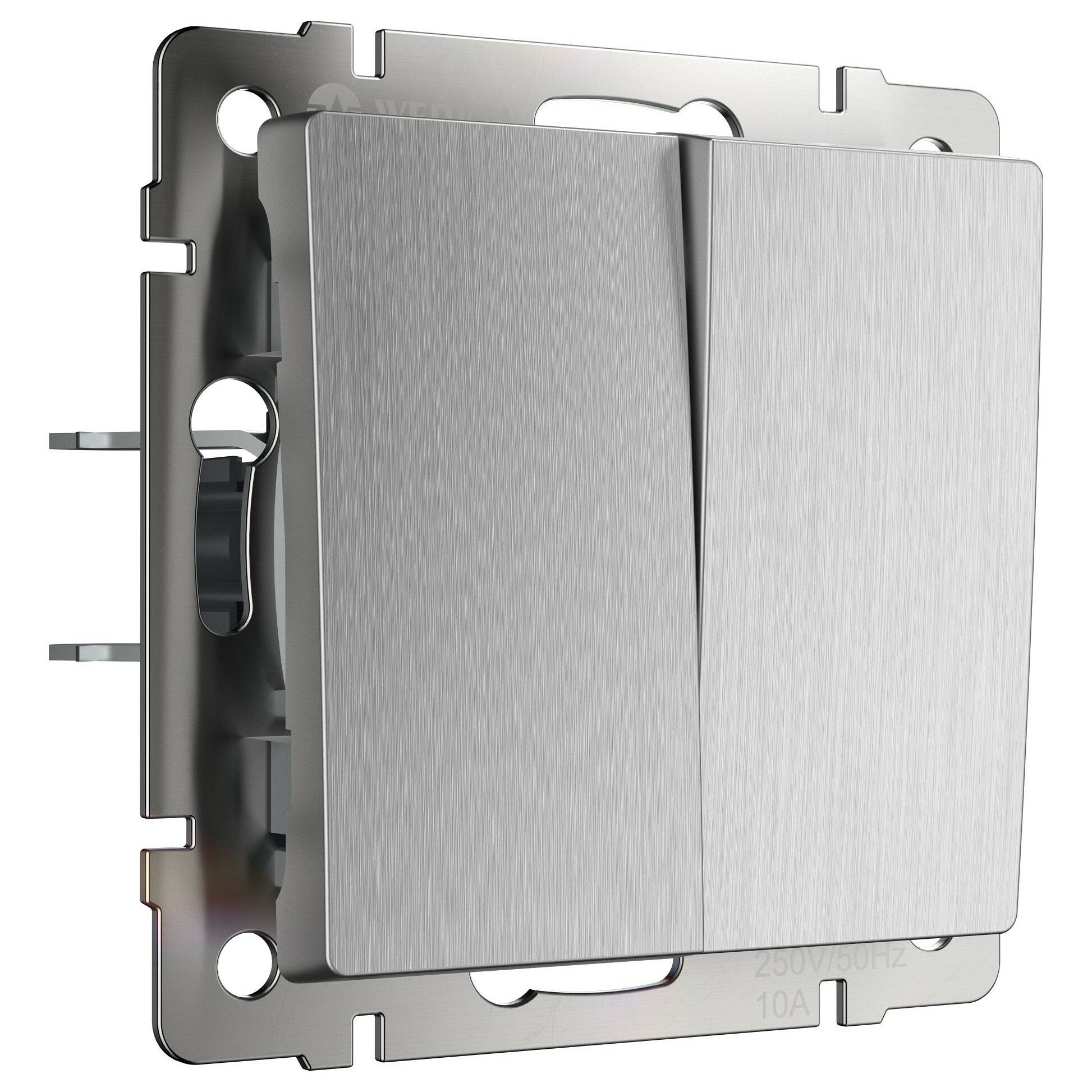 Встраиваемый двухклавишный выключатель Werkel Hammer W1120065 серебряный матовый 10 А