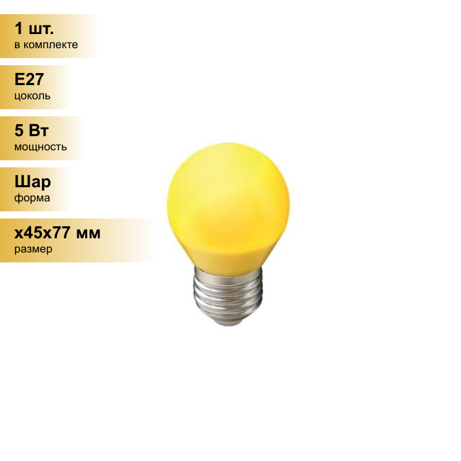 Ecola шар G45 E27 5W Желтый матов. 77x45 K7CY50ELB (арт. 617389)
