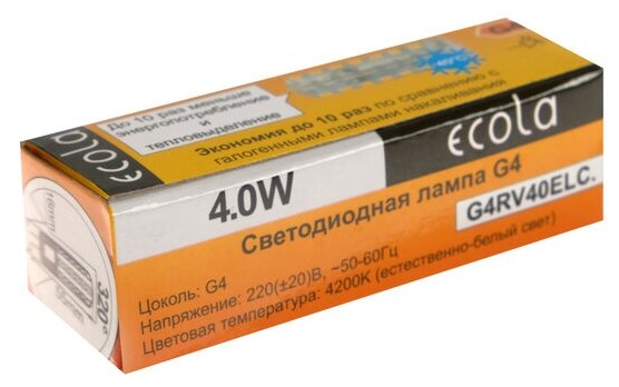 Ниже Вы можете прочитать отзывы на Ecola G4 220V 4W 4200K 4K 320° 55x16 G4RV40ELC, ознакомится с подробными характеристиками, посмотреть интересные обзоры и фотографии на Ecola G4 220V 4W 4200K 4K 320° 55x16 G4RV40ELC.