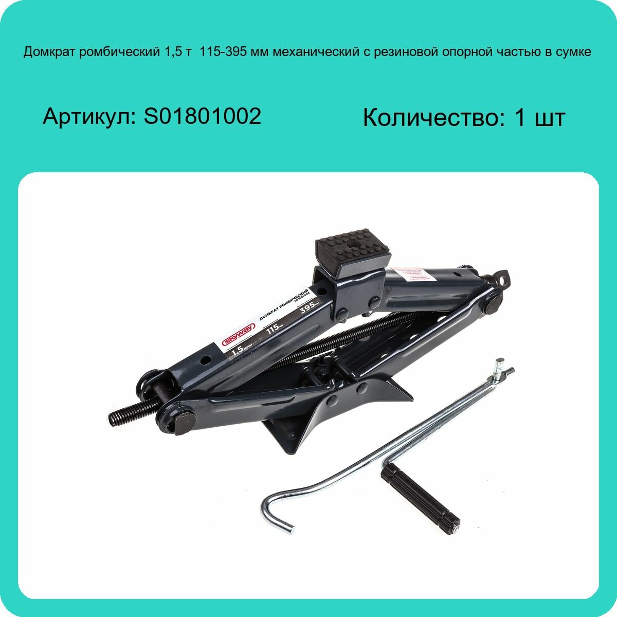 SKYWAY S01801002 Домкрат ромбический 1,5 т 115-395 мм механический с резиновой опорной частью в сумке Skyway