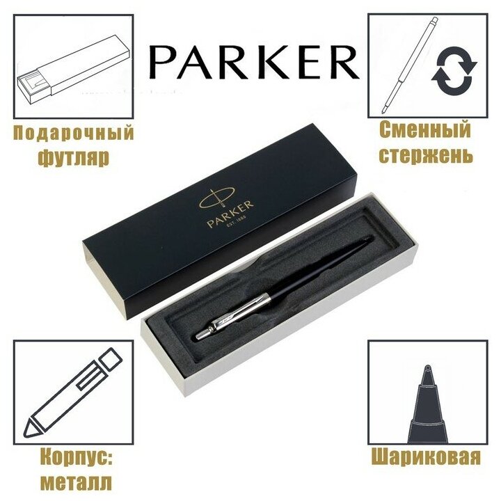 Ручка шариковая PARKER "Jotter Core Bond Street Black CT", корпус черный, хромированные детали, синяя, 1953184, 142381