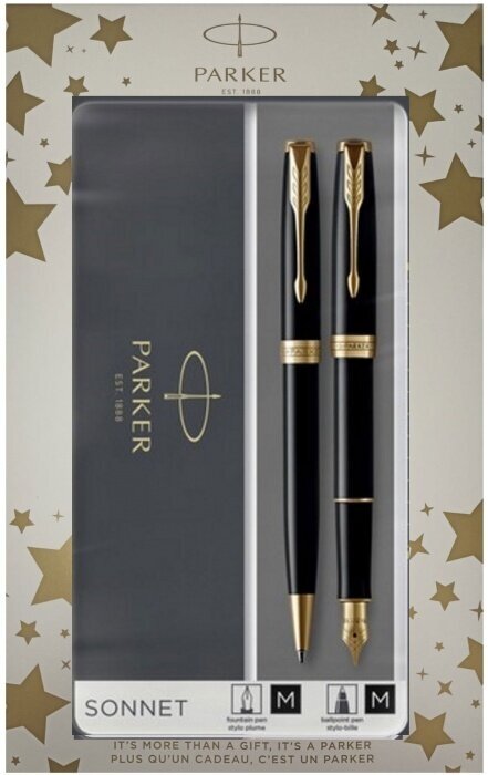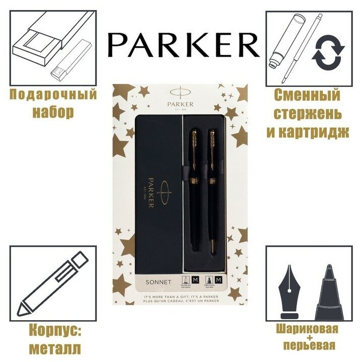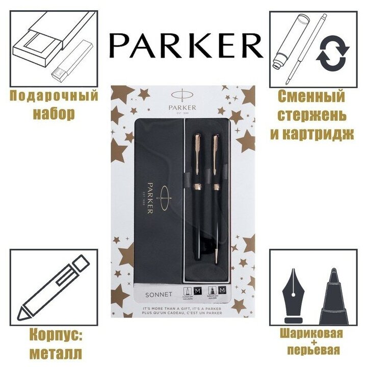 Ручка Parker Набор ручек Sonnet (2093371) LaqBlack GT подар.кор. перьевая, шариковая интересное: