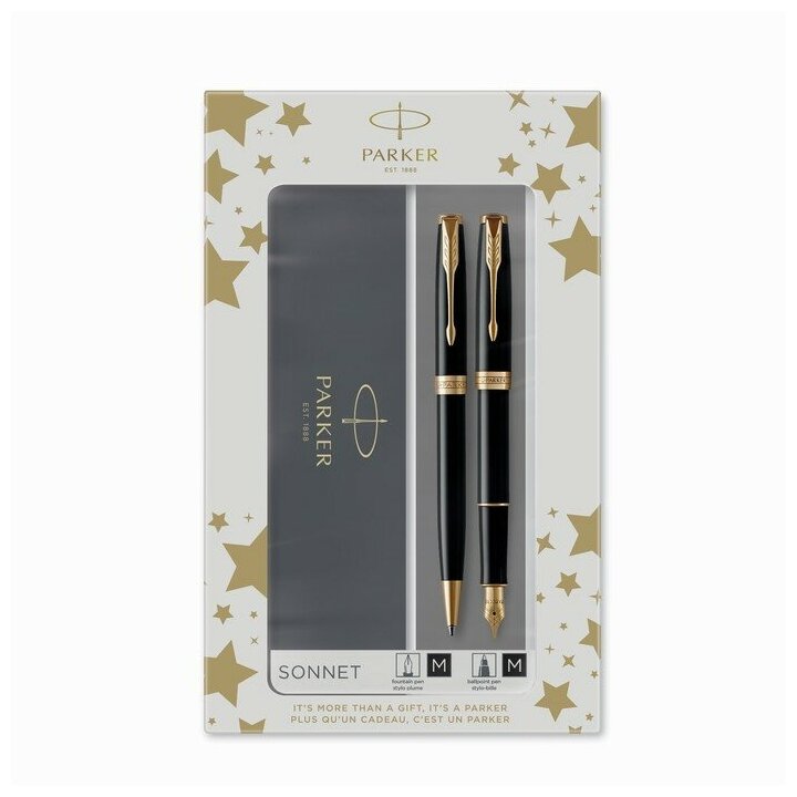 Купить Ручка Parker Набор ручек Sonnet (2093371) LaqBlack GT подар.кор. перьевая, шариковая