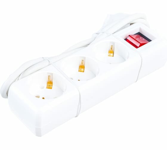Удлинитель с выключателем IEK У03К-выкл, ПВС 3 x 1 мм², с заземлением, 3 розетки, 1,5 м, белый