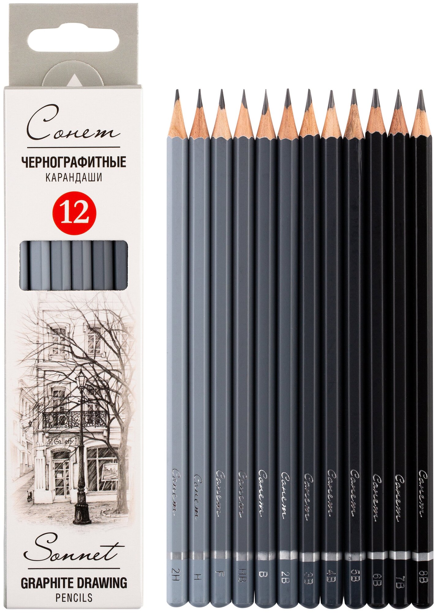 Купить Карандаши простые Сонет 12 штук 8B-2H (12941432)