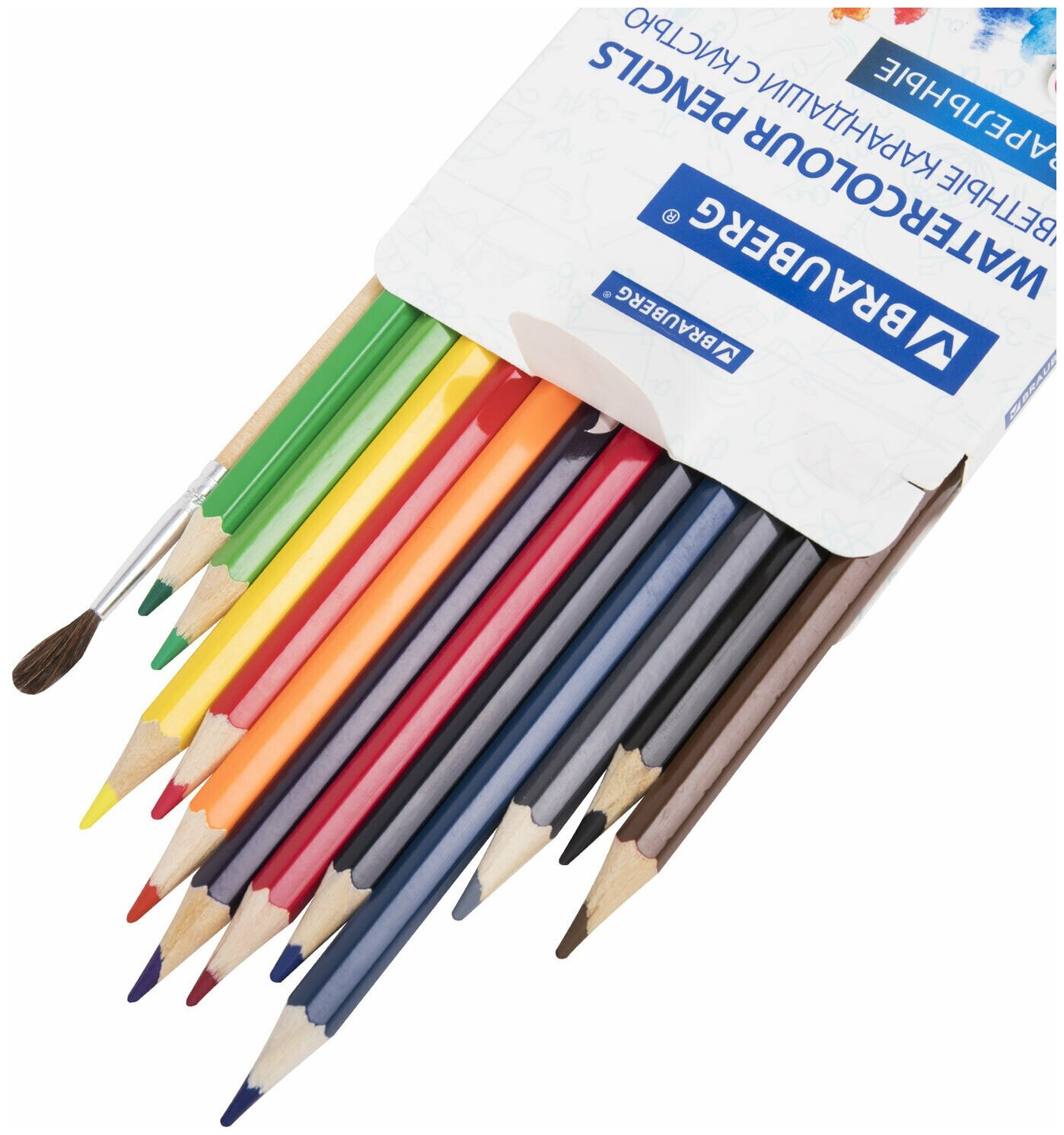 Купить Карандаши цветные акварельные классические мягкие BRAUBERG, 24 цвета, с кистью, 181849