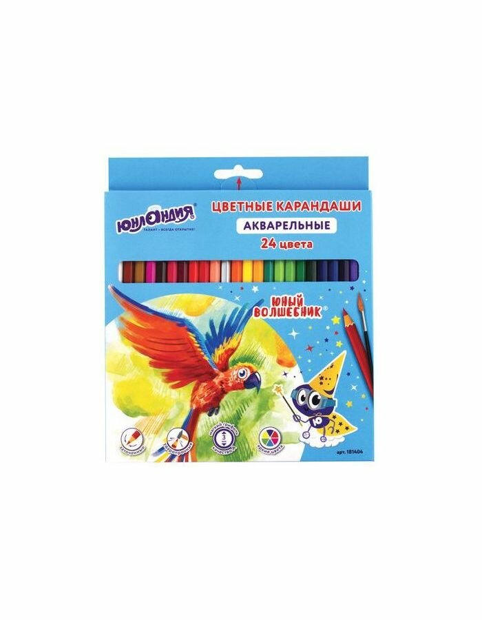 Карандаши цветные акварельные юнландия "юный волшебник", 24 цвета, шестигранные, заточенные, 181404 В комплекте: 1шт.