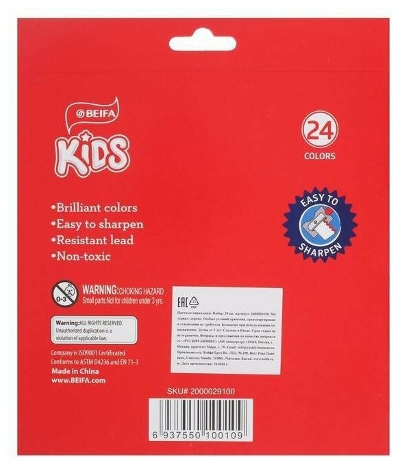 Купить Карандаши 24 цвета Beifa «Яркий мир», на масляной основе
