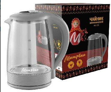 Чайник электрический матрёна MA-009 2 л, 1500 Вт, стекло, серый интересное: