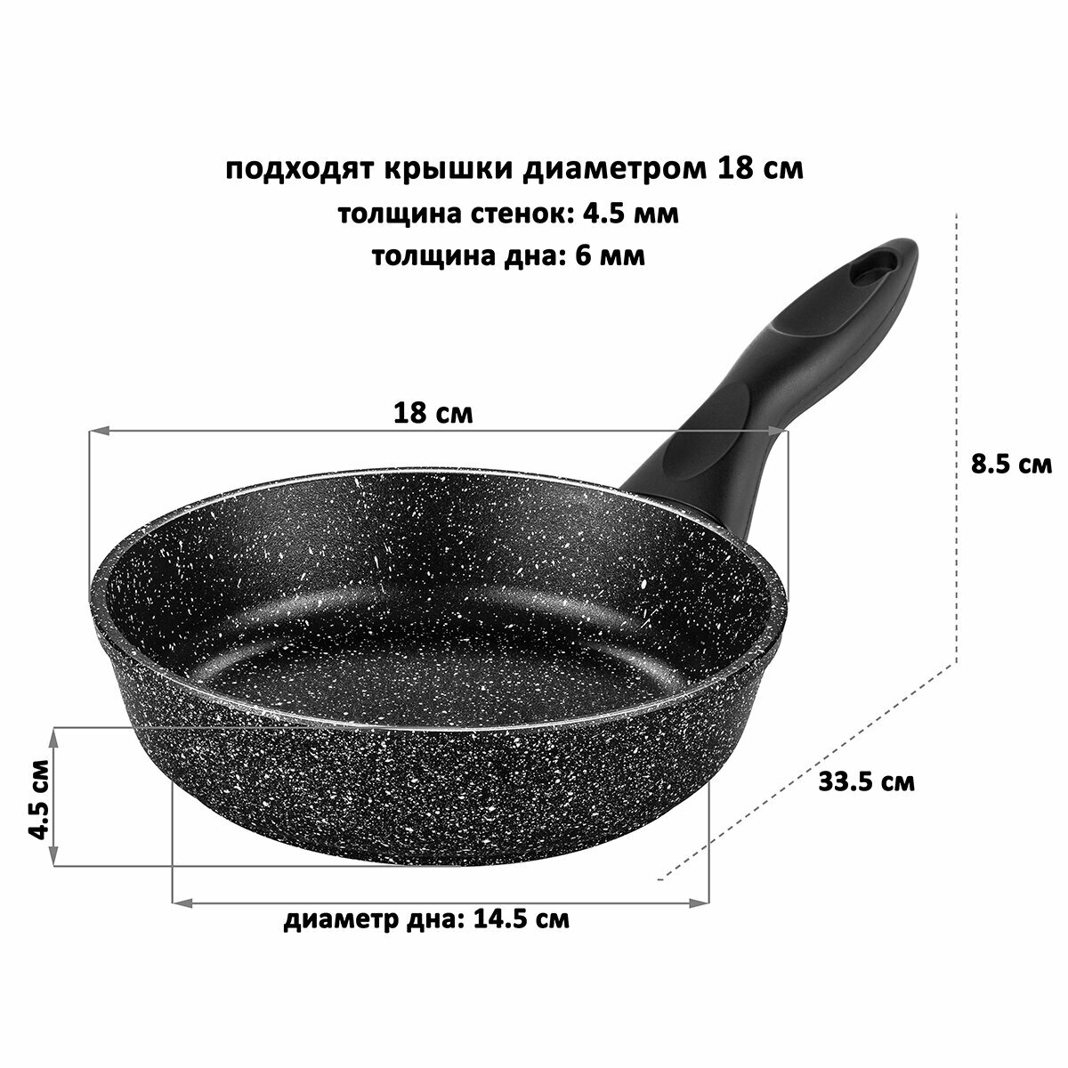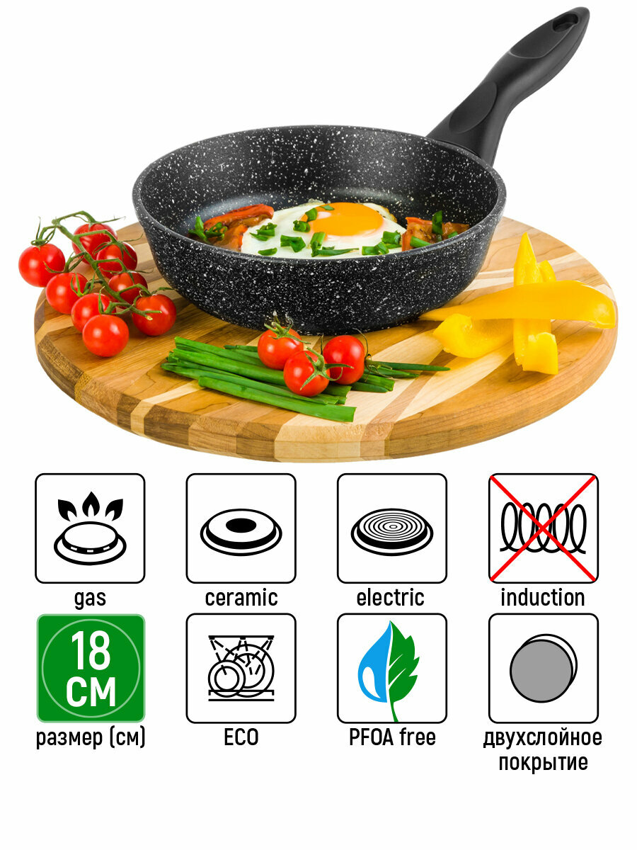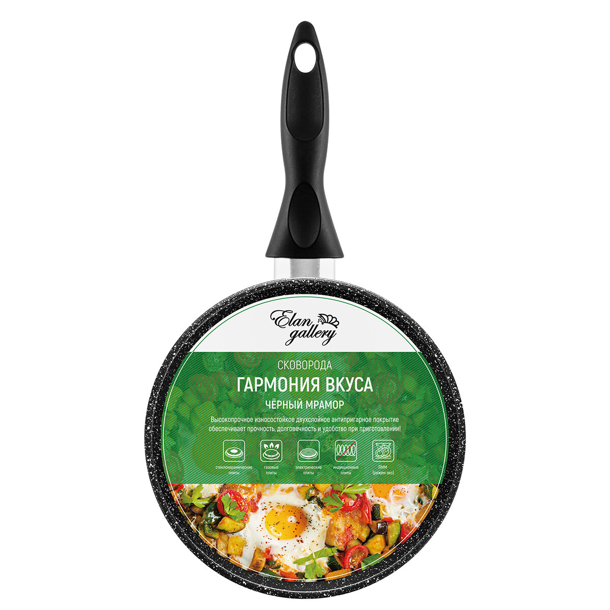 Сковорода глубокая 18 см Elan Gallery гармония вкуса Черный мрамор, несъёмная ручка интересное: