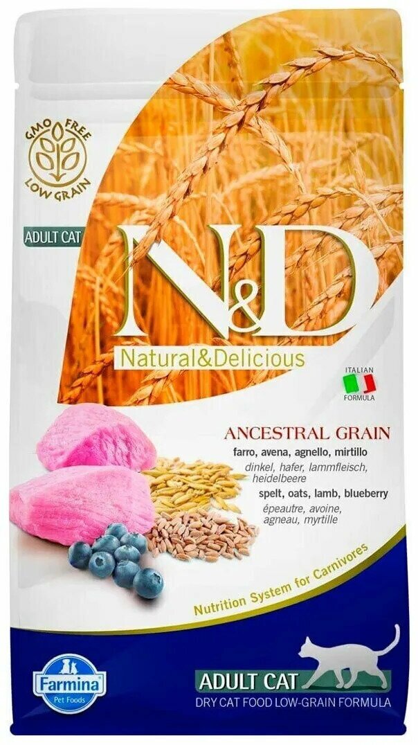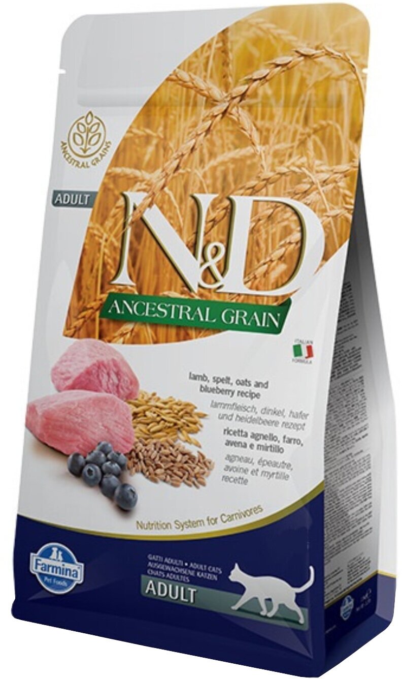 N&D ancestral grain cat ягненок, спельта, овес и черника для взрослых котов и кошек 1.5 кг х 2 шт.