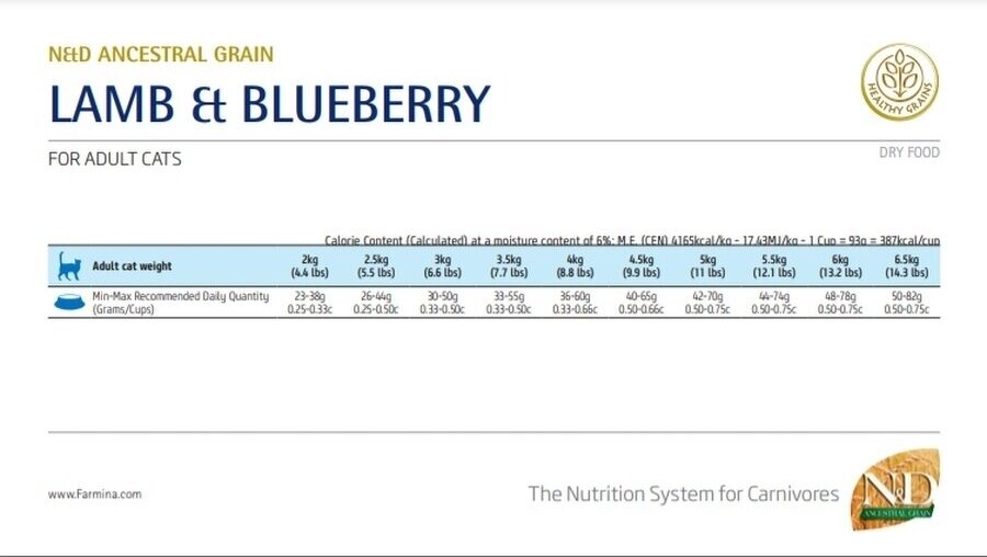 FARMINA CAT N&D ANCESTRAL GRAIN LAMB & BLUEBERRY низкозерновой для взрослых кошек с ягненком и черникой (10 кг)