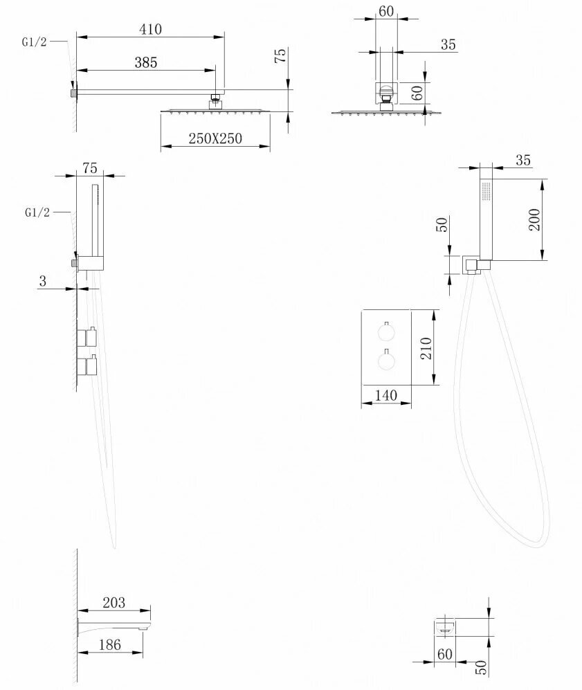 | Форма верхнего душа | квадратная |