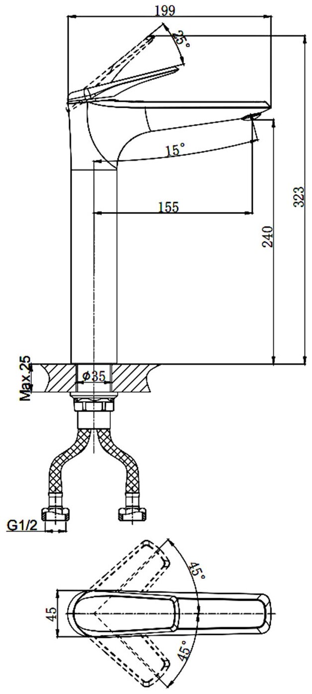 Смеситель одноручный для умывальника,черный RUSH Nevis (NE1735-11blаск)