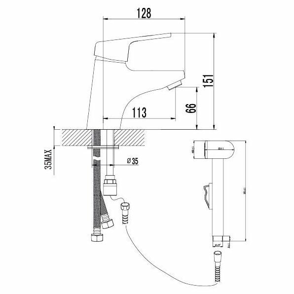 Luna Смеситель для раковины с гигиеническим душем, LM4116C
